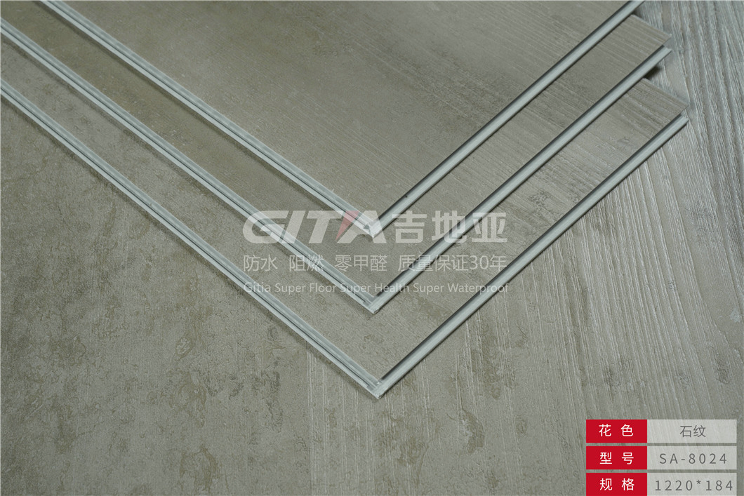 Gitia 4mm new design waterproof and fireproof vinyl floor PVC Flooring ( Poly-Vinyl Chlroride) Had Several Kinds :PVC /LVT/LVP/WPC/SPC/Vinyl floor /Vinyl Plank .Our Main products is SPC Flooring ( Stone Plastic Composite flooring )it is one kind of Heterogeneous Flooring ,also called :Rigid Core ......