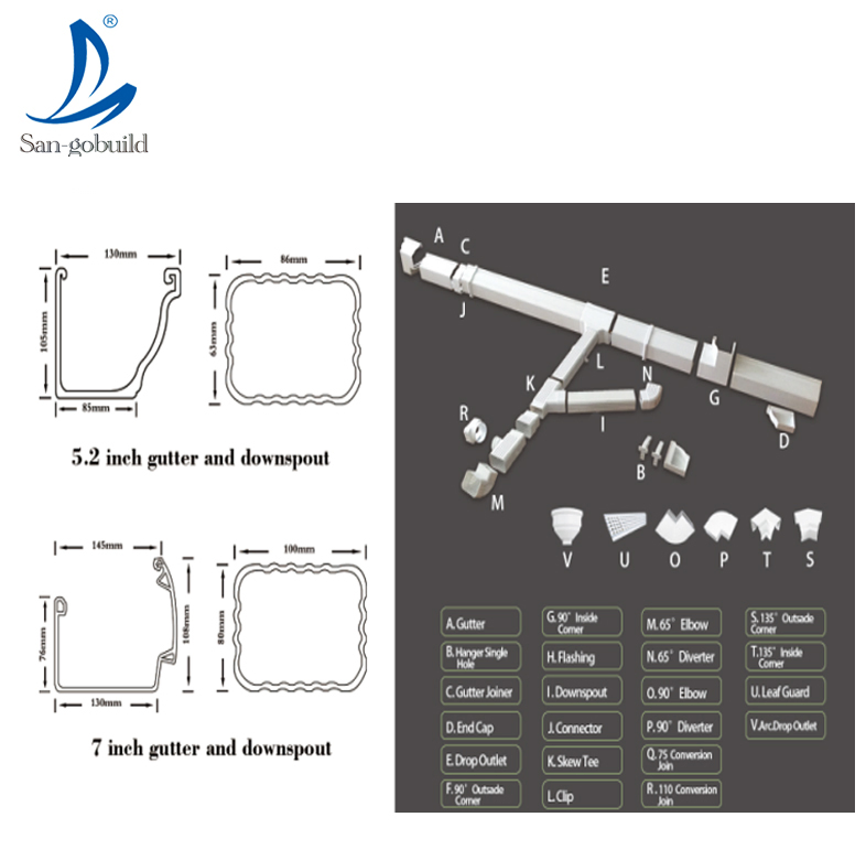 All Sangobuild stone coated roofing tile are make by galvalume steel (Aluminum Zinc coated steel sheet=PPGL) which have shown in tests to last 6-9times longer than ordinary galvanised steel(Zinc plated steel=PPGI).PVC rain gutter pipe/rain gutter brackets/rain gutter fittings