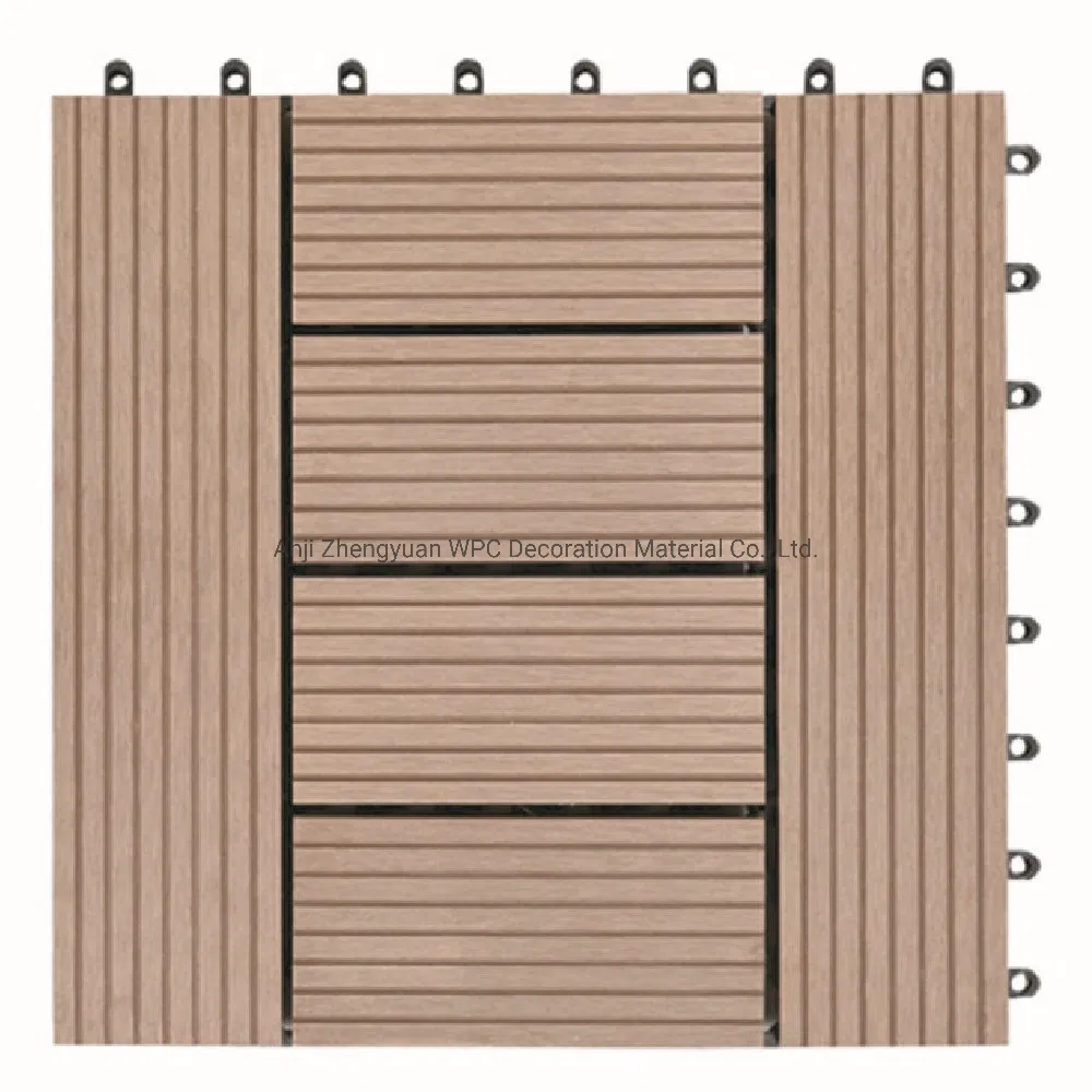 6 slat outdoor interlocking wood composite deck flooring tiles with plastic base